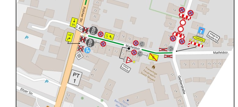 Die Umfahrung der Vollsperrung erfolgt über die Maifeldstraße und St.-Veit-Straße.